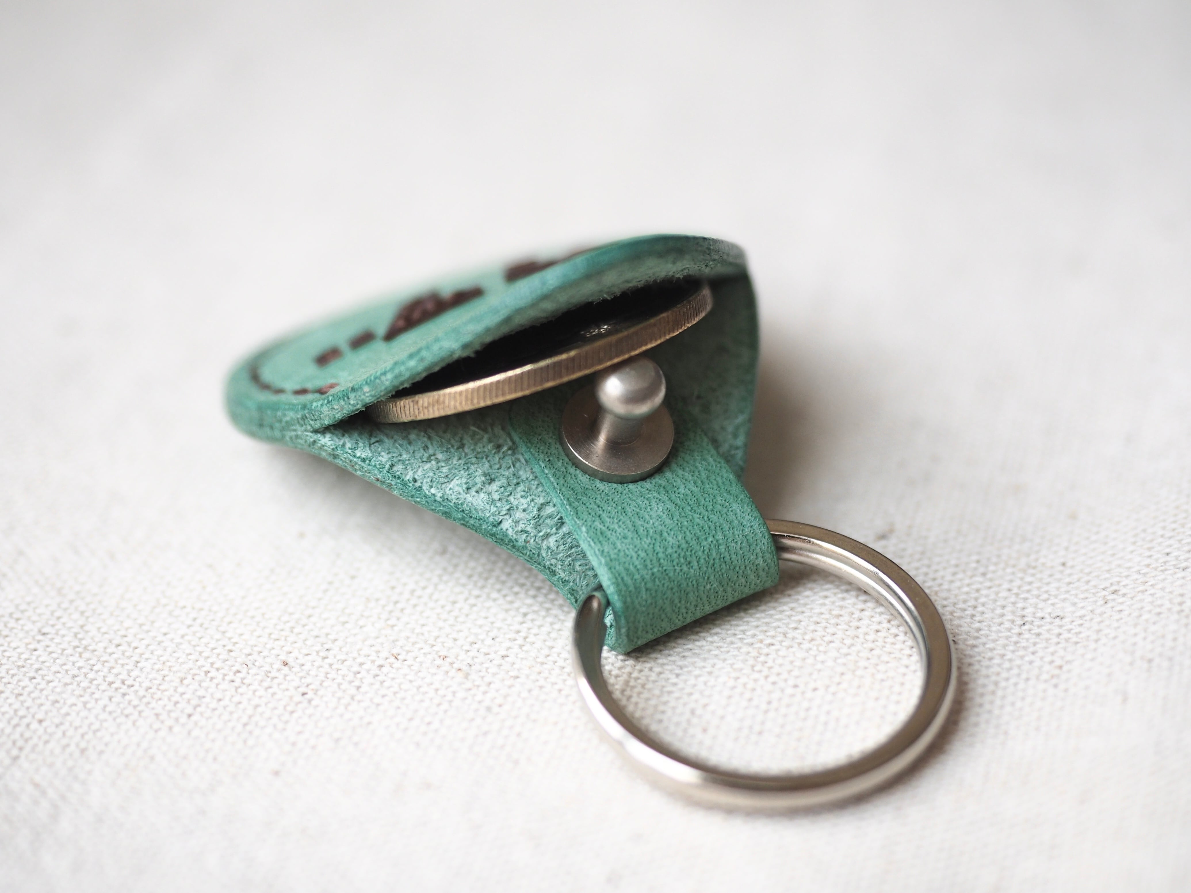 革の色から思いついたチョコミントカラー。