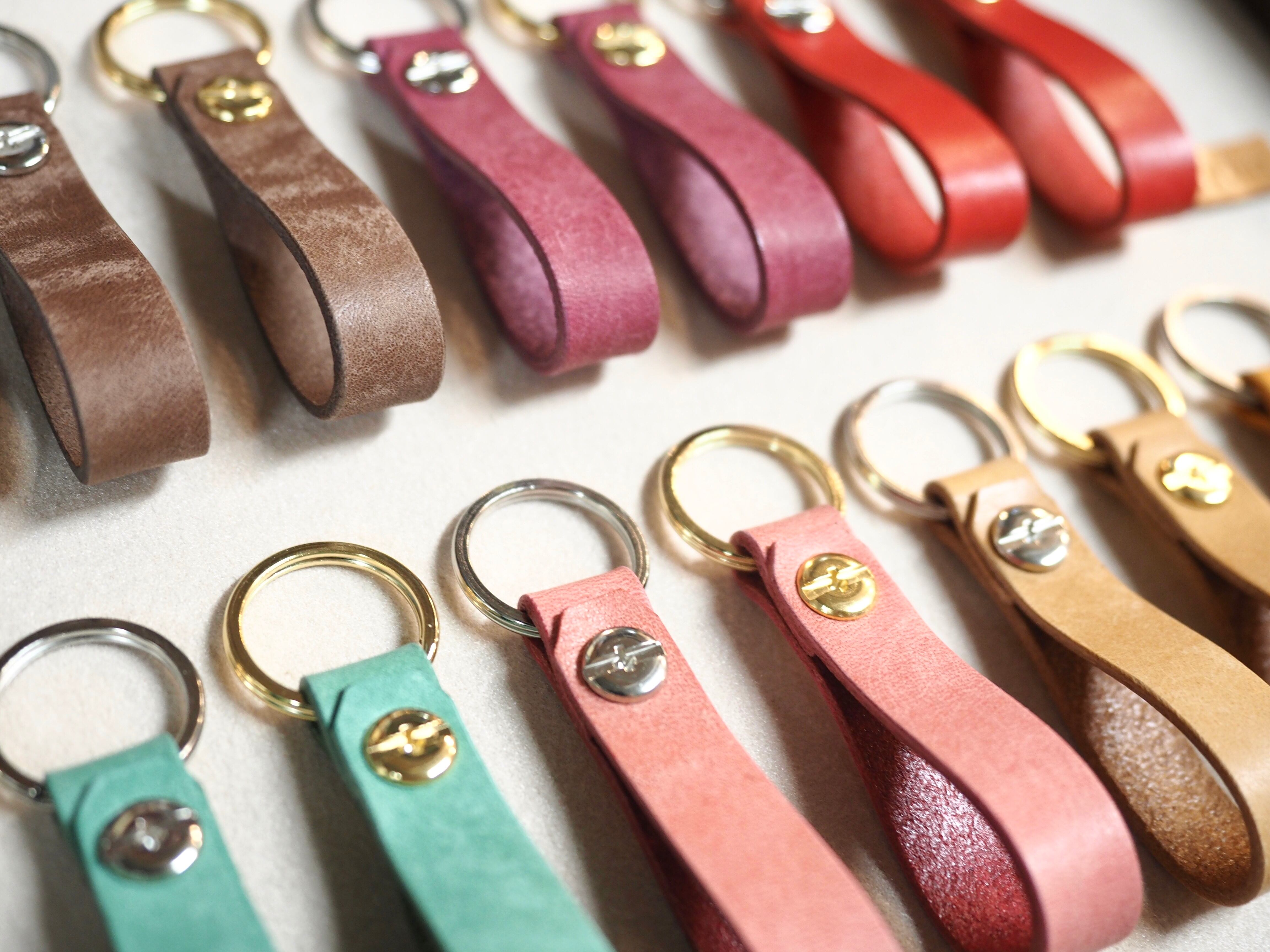 シンプルな輪っかキーホルダーを、上質なイタリアンレザーで作りました◎
